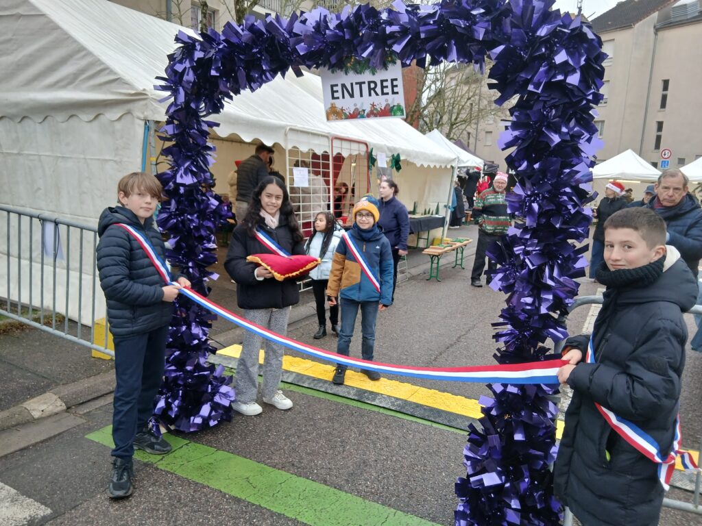 Gaëtan, Sandro, Léana et Raphaël étaient présents pour couper le ruban avec Monsieur le Maire